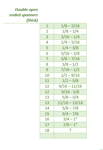 So far the only duplicated number which have 2 sizes I have found are numbers 12,13, 29 and 30. This maybe due to multiple production runs and the influence of A.F and S.A.E. nut & bolt sizes becoming much more prevalent in the tool market.