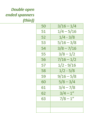 Double open ended spanners ( thick)